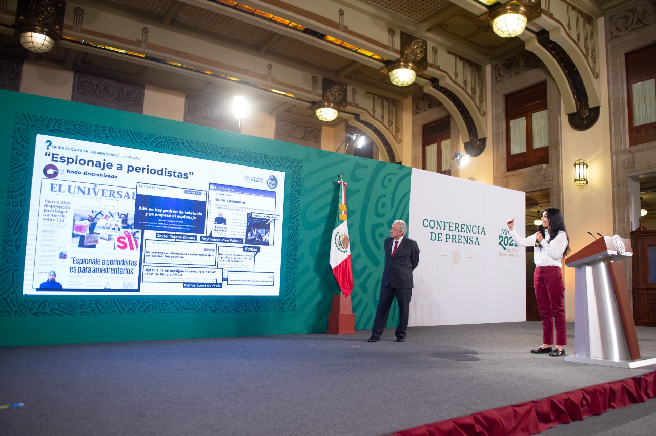 Acusó “Nado sincronizado”, es decir, que varios medios de comunicación y periodistas compartieron contenidos parecidos sobre supuesto espionaje. La nota inicial fue del periódico El Universal. Desmintió las noticias.