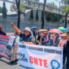 MÉXICO.- Integrantes de la Coordinadora Nacional de Trabajadores de la Educación (CNTE) protagonizaron una movilización en los accesos de Palacio Nacional, en el corazón de la Ciudad de México, impidiendo el ingreso a la conferencia matutina de la Presidenta Claudia Sheinbaum Pardo.